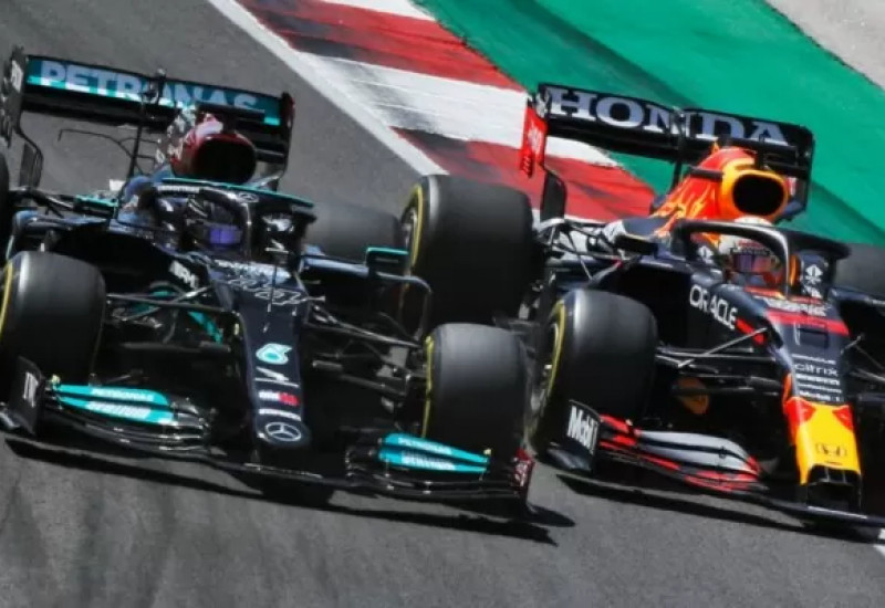 Na volta 11, Hamilton usou o DRS para retomar a posição de Verstappen. Colocou por dentro e ganhou a segunda posição.