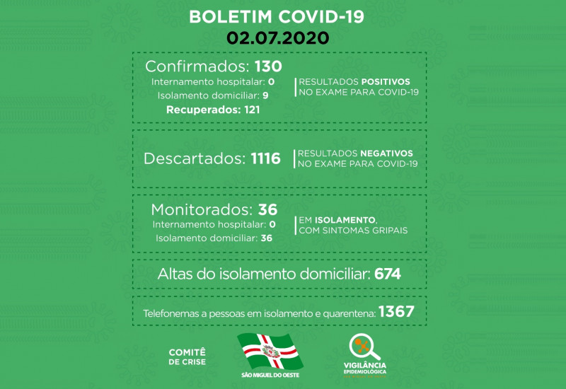Dos 130 pacientes já positivados em São Miguel do Oeste, somente nove ainda estão com a doença, nenhum com internação hospitalar.