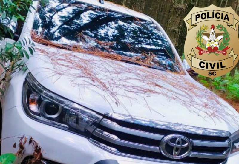 Na manhã desta terça-feira (23), a Polícia Civil de Anchieta foi informada de que a camionete Hilux roubada e utilizada na fuga pelos autores estava no meio de uma plantação de pinus, próximo ao local em que os suspeitos haviam se escondido após a prática criminosa. O Instituto Geral de Perícias foi acionado para realização de perícia no veículo, no intuito de serem colhidas digitais e outros indícios para futura perícia papiloscópica.