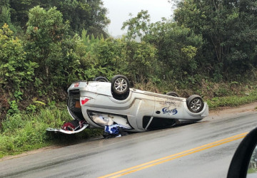 Carro funerário capota em rodovia catarinense