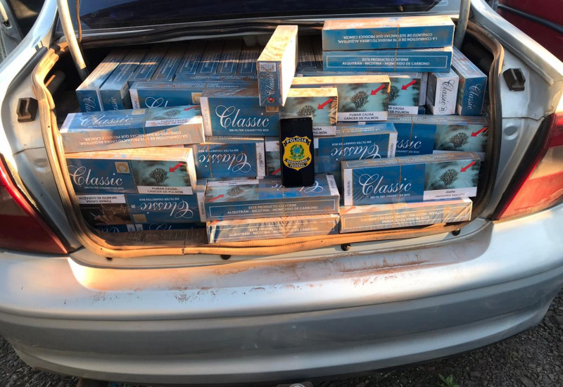Durante a fiscalização os PRFs encontraram 9 mil maços de cigarros contrabandeados do Paraguai no interior do veículo.