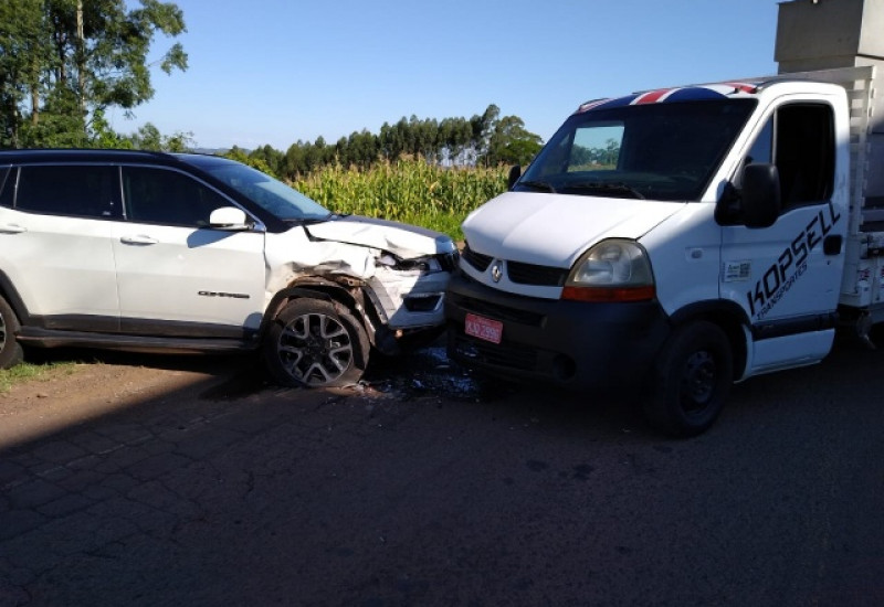 Conforme a Polícia Militar Rodoviária Estadual (PMRv), de Iporã do Oeste, o acidente envolveu uma caminhonete Renault/Master, emplacada em Chapecó, conduzida por um homem de 43 anos, ileso, e um utilitário Jeep/Compass, emplacado em São João do Oeste, conduzido por uma mulher de 69 anos, que sofreu ferimentos leves.