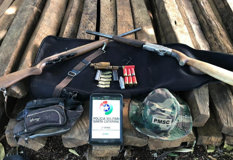 Em ação de fiscalização na fronteira, contra a prática de caça e retirada de madeira nativa da Argentina, o 2º Batalhão de Polícia Militar Ambiental, por meio de seu Pelotão em São Miguel do Oeste, realizou apreenções nesta sexta-feira (08), em um acampamento às margens do rio Peperi-Guaçú, no interior do município de Paraiso (SC).