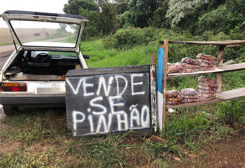 Após desenvolver nos últimos dias uma série de atividades de prevenção e orientação sobre o período de defeso do pinhão, a PMA efetuou diversas fiscalizações em propriedades, comércios e barreiras, com o objetivo de fiscalizar possíveis práticas ilegais. Contudo na tarde desta terça-feira, flagrou o comércio irregular de pinhão às margens da BR 163, no Distrito de Idamar em Dionísio Cerqueira.
