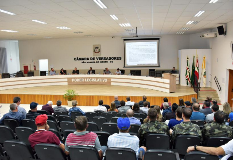 A Câmara de Vereadores de São Miguel do Oeste realizou nesta quinta-feira (27) uma audiência pública para debater os projetos de lei complementar 22/2019, 24/2019 e 25/2019, todos de autoria do Poder Executivo e que estão em tramitação na Câmara desde novembro do ano passado. Os projetos em questão tratam de alterações no Plano Diretor, no Código de Obras e na Lei do Parcelamento do Solo.