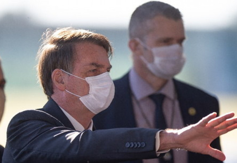 residência oficial, Bolsonaro apareceu usando máscara de proteção. Pela manhã,