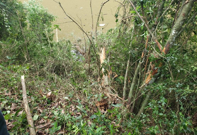 De acordo com os bombeiros, possivelmente o caminhão tenha caído durante a madrugada. As imagens mostram as marcas em meio a mata da possível queda do caminhão no rio.