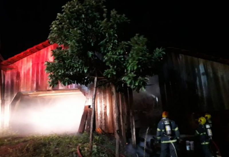O Corpo de Bombeiros foi acionado para combater um incêndio que atingiu um galpão por volta das 19h15min desta sexta-feira (05), nas proximidades da divisa entre as linhas Soledade e Ervalzinho, no interior de São João do Oeste (SC).