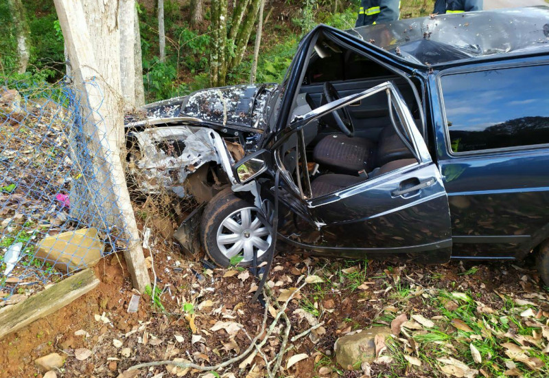 De acordo com informações do Corpo de Bombeiros, um Volkswagen Voyage, com placas de Pinhalzinho, saiu da pista e acabou colidindo em uma árvore.