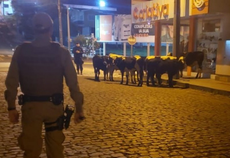 Durante a madrugada desta terça-feira (23), por volta das 5 horas, a Policia Militar atendeu uma ocorrência na área central do município de Ponte Serrada/SC. Eram cerca de nove animais bovinos soltos pela via.