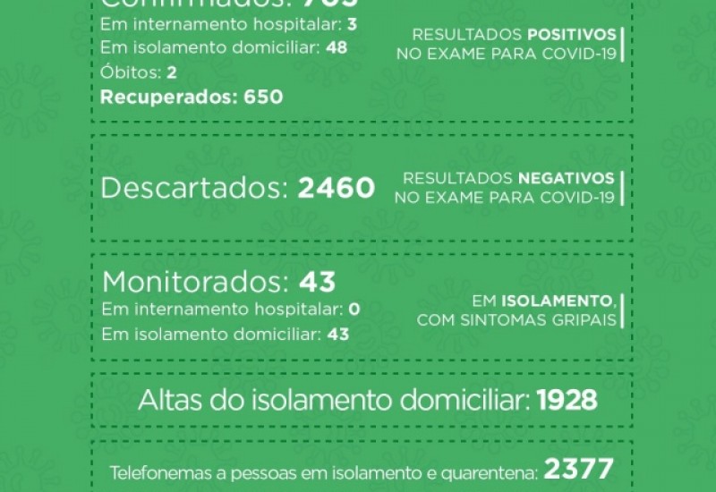 Sete pessoas (cinco mulheres e dois homens) foram diagnosticadas com Covid-19 nesta terça-feira (6), aponta o relatório diário do Comitê de Crise de SãoMiguel do Oeste. No total, 703 pessoas foram confirmadas com a doença no município, das quais 650 já se recuperaram e 51 ainda estão com o vírus ativo.