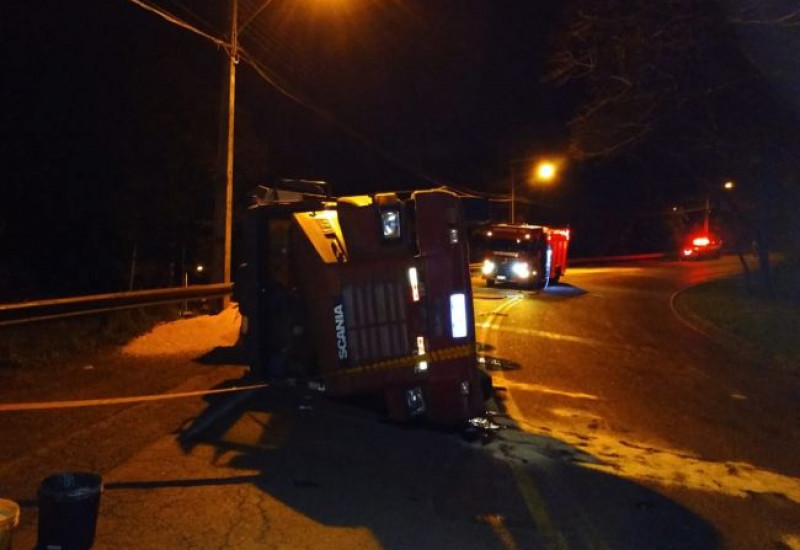 Por volta das 22h30min deste domingo (23), foi registrado um capotamento de caminhão na SC 163, próximo a