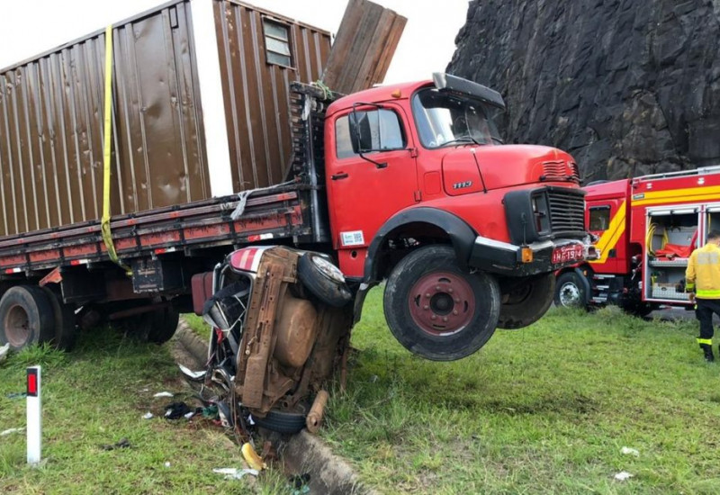O acidente envolveu um caminhão e um carro. Segundo os bombeiros, outras