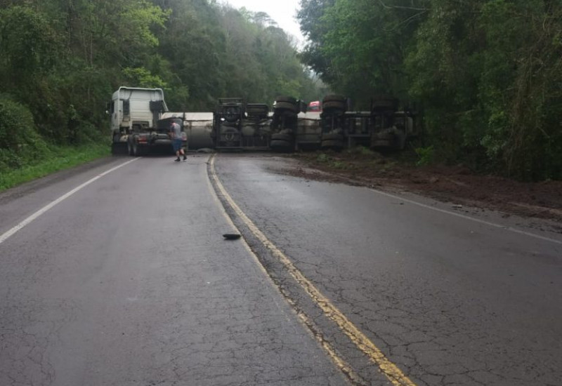 interditado após o tombamento de um caminhão na tarde desta quarta-feira (19). Informações apontam que houve