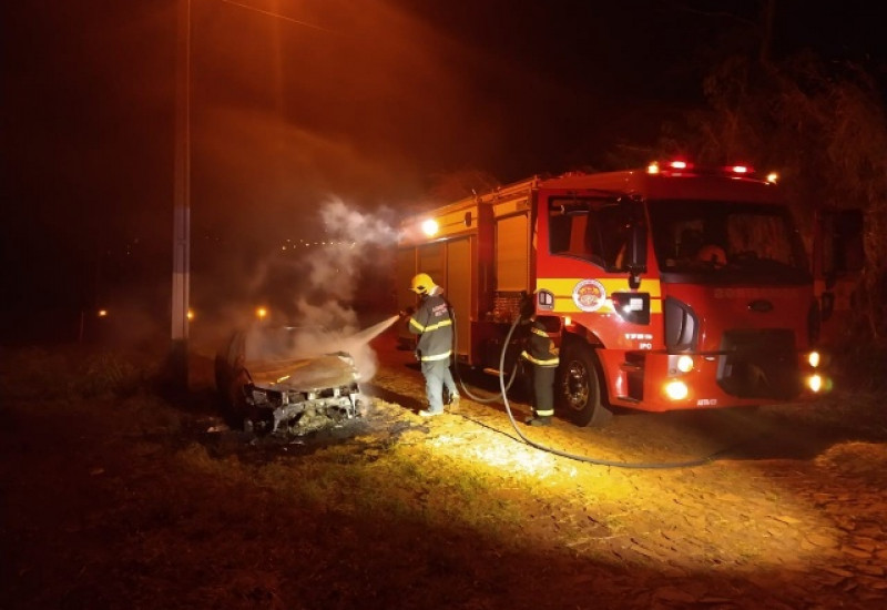 automóvel estava completamente tomado pelas chamas. Os bombeiros apagaram o