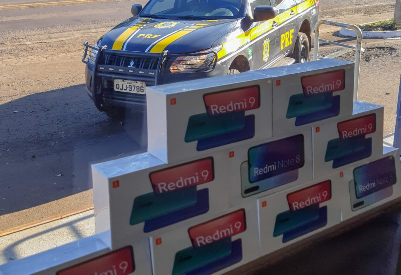 Durante a fiscalização, os PRFs encontraram nove aparelhos celulares Redmi 9, sem comprovação de desembaraço aduaneiro, caracterizando descaminho.