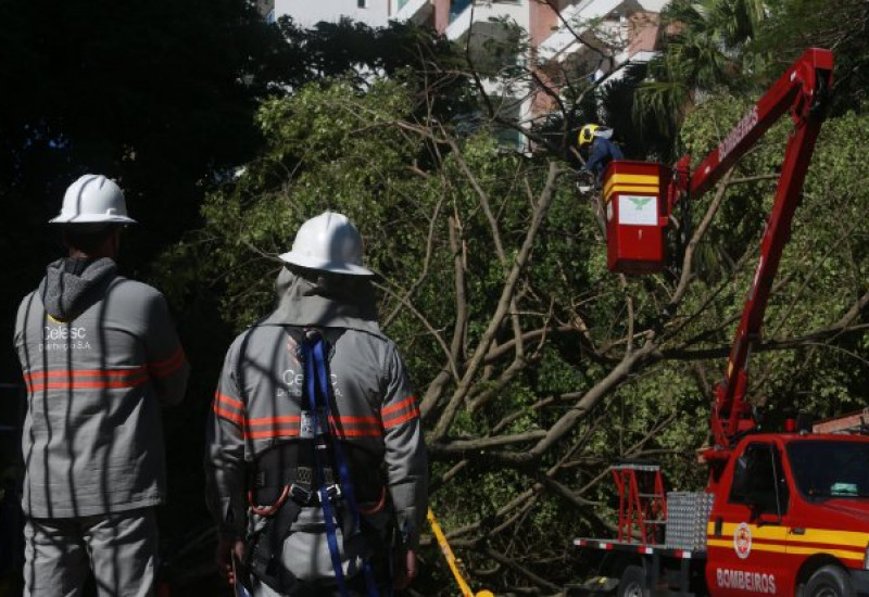 Equipes da Celesc seguem nas ruas para restabelecer o fornecimento.