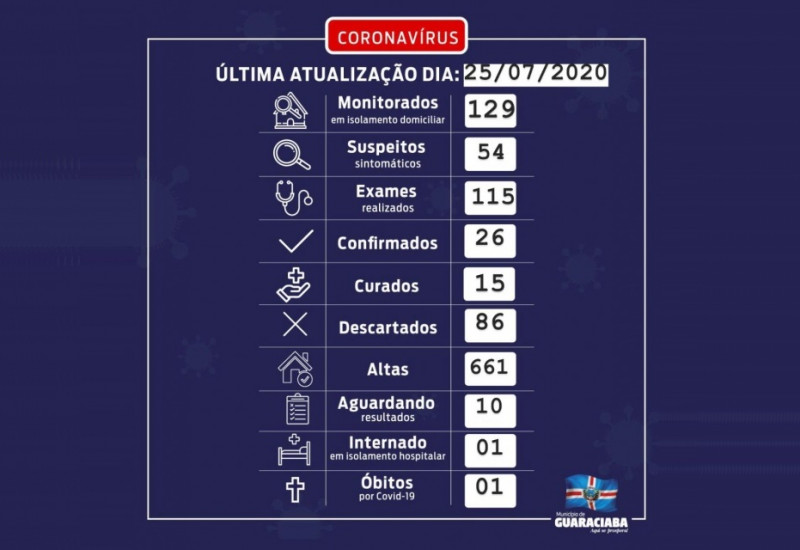 A Secretaria de Saúde de Guaraciaba comunicou na tarde deste sábado (25) o primeiro óbito por Coronavírus.