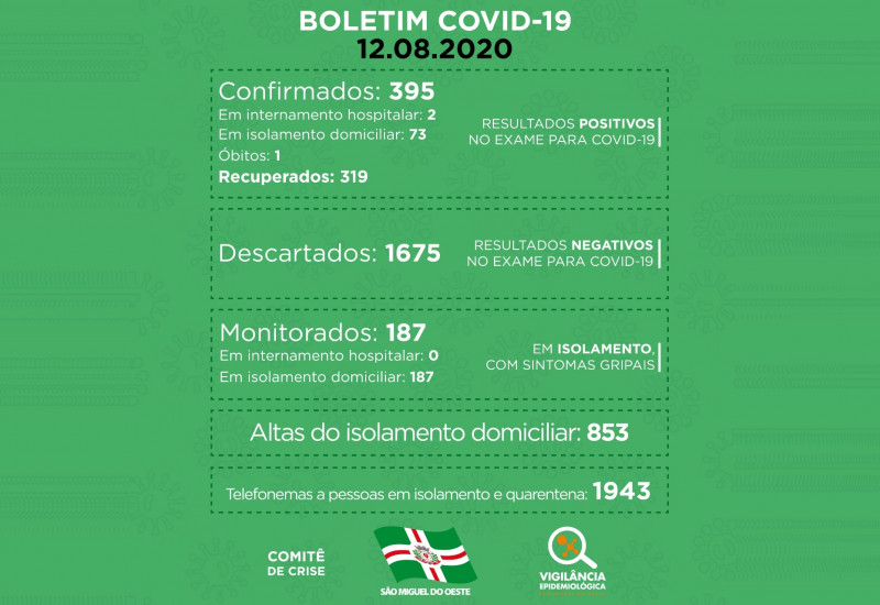 Boletim epidemiológico divulgado nesta quarta-feira (12), em São Miguel do Oeste, aponta 22 novas pessoas que testaram positivo para covid-19 no município.