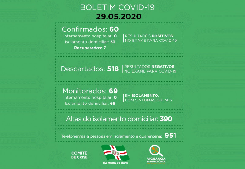 Mais quatro mulheres e dois homens de São Miguel do Oeste testaram positivo para covid-19, elevando o total de casos para 60.