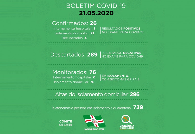Nesta quinta-feira (21), foi confirmado o 26º paciente com o Covid-19, em São Miguel do Oeste.