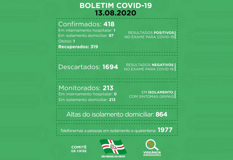 São Miguel do Oeste registrou nesta quinta-feira (13) mais 23 testes positivos para o Covid-19.