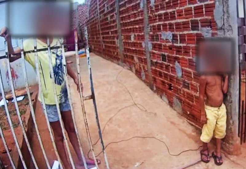 dias. A criança estava debruçada no chão com o tornozelo amarrado por um