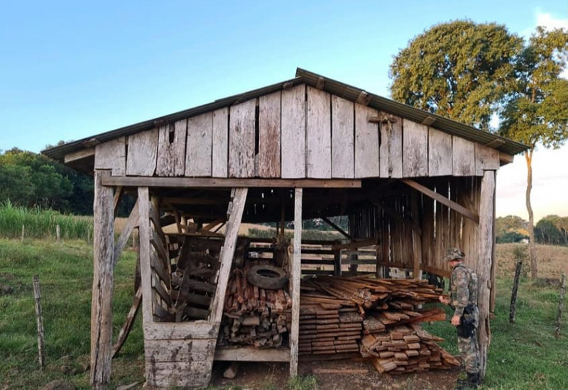 E nesta terça-feira, em mais uma ação de fiscalização, desta vez na Linha Aurora, no interior de São José do Cedro, a PMA flagrou o depósito irregular de mais dois metros cúbicos de madeira nativa das espécies conhecidas como Cedro e Araucária, que se encontram classificadas como vulneráveis na lista de espécies ameaçadas de extinção.