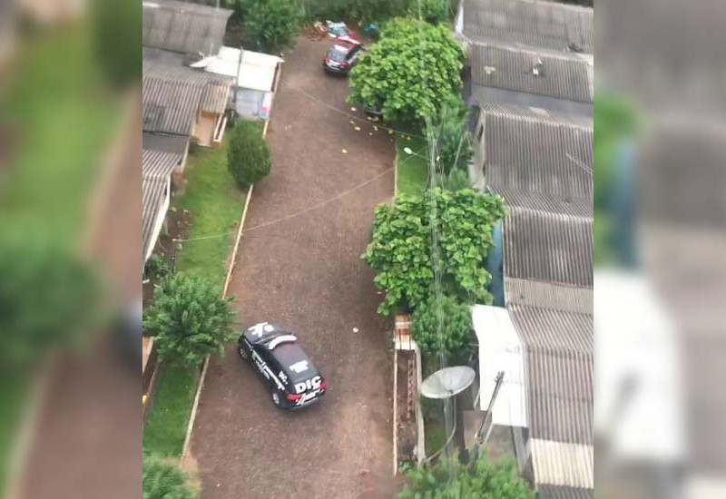 Foram realizadas buscas no Município de Riqueza, com a presença do SAER/Fron (Serviço Aeropolicial de Fronteira da Polícia Civil), sendo apreendidos objetos de interesse da investigação criminal para a apuração da autoria do delito.