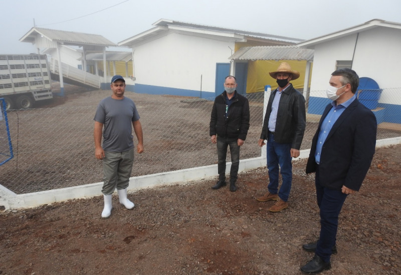 O prefeito em exercício de São Miguel do Oeste, Edenilson Zanardi, acompanhado do secretário de Agricultura, Antonio Orso, e do servidor responsável pelo setor de movimento econômico, Plaudenir Mallmann, esteve na linha Dois Irmãos no início da manhã desta quarta-feira (28), acompanhando o descarregamento dos primeiros suínos que serão alojados em um empreendimento rural da propriedade de Vilson Heydt.