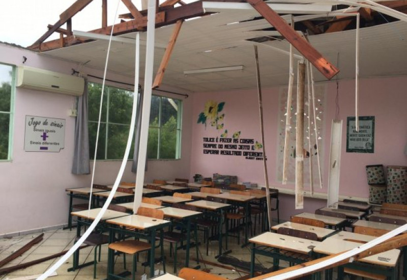 elétrica, destelhamentos de salas de aula e ginásios, queda de forros,
