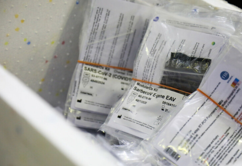 viral por RT-PCR (tipo de exame) e coleta de cinco mililitros de sangue para