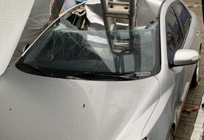 assustou os moradores. Um carro foi destruído com a queda de uma estrutura em Itajaí e