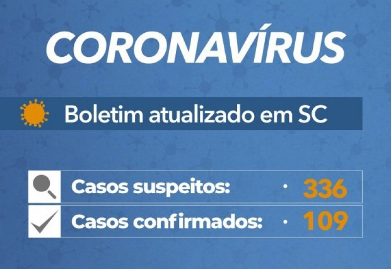 109 casos confirmados do novo coronavírus, conforme boletim de atualização