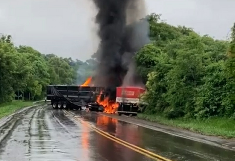A colisão foi violenta e os caminhões pegaram fogo. Diversas equipes dos Bombeiros de São Miguel do Oeste e Maravilha, bem como o Samu foram ao local.