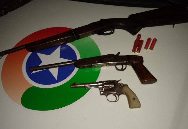 Na residência, a Polícia Militar encontrou próximo a casa uma Espingarda Calibre 36, uma outra arma de fogo, Calibre 32, e um Revólver, Calibre 32, que foram apreendidos.
