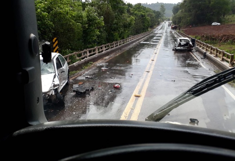 dois carro em cima de uma ponte na SC-283, entre Palmitos e Caibi, no Oeste de