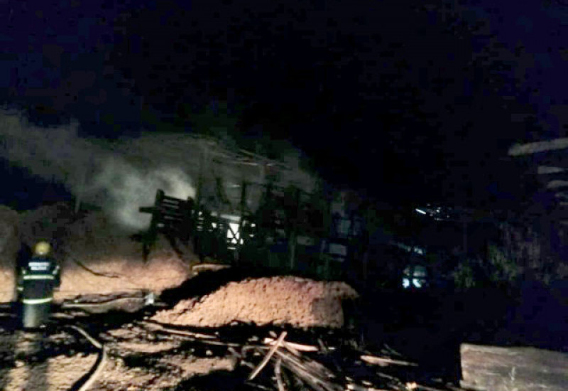 No local, os bombeiros encontraram o picador e a estrutura da esteira, com aproximadamente 100m², e o barracão com 1.000m², totalmente em chamas.
