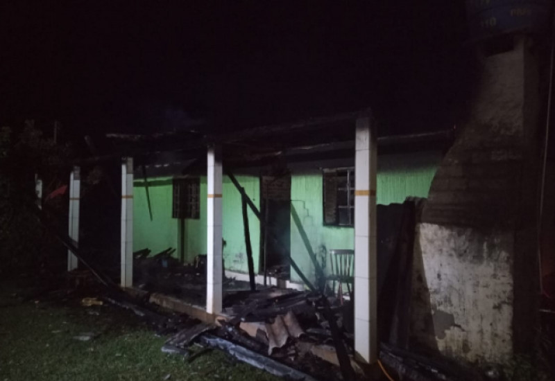 Uma residência foi totalmente destruída pelo fogo na noite de sexta-feira (9), em Riqueza. O Corpo de Bombeiros de Iporã do Oeste foi acionado às 23h58min, para atender a ocorrência, em Linha Anta Gorda Baixa.