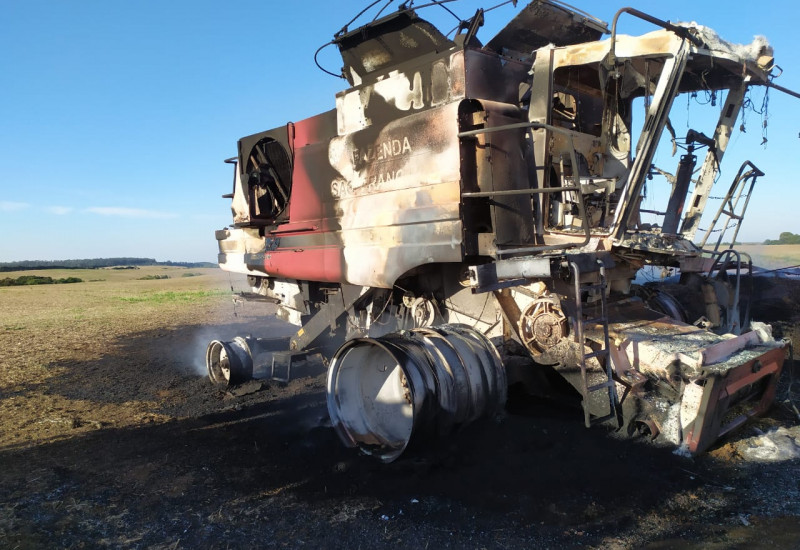 final, de acordo com o boletim, onde as chamas consumiram a colheitadeira e