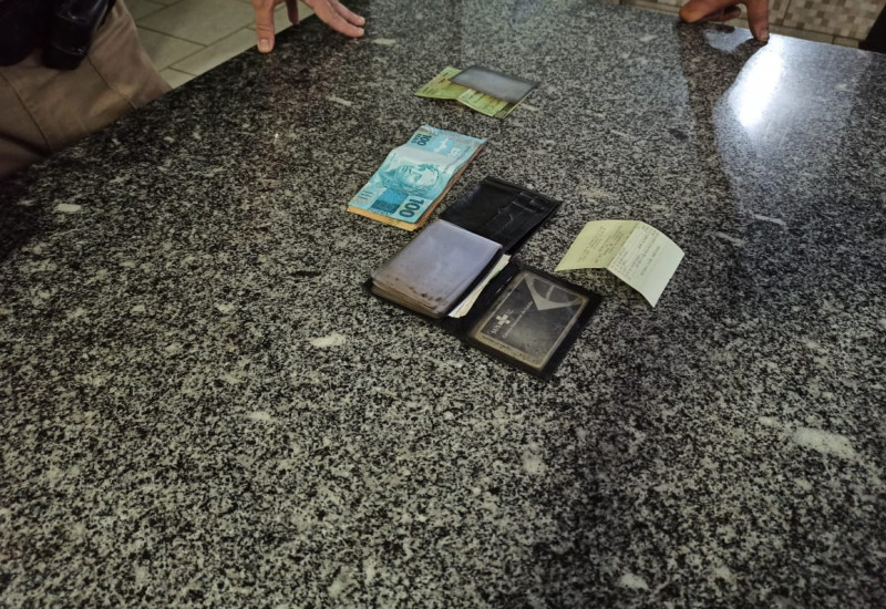 O morador de Irani, no Oeste, ligou para o posto policial e informou que encontrou uma carteira com documentos pessoais e a quantia de R$ 1.450,00 quando andava no perímetro urbano da SC-155 em Abelardo Luz, também no Oeste. Também falou que havia documentos pessoais em nome do Bruno Alexandre Rosiak, de 30 anos.