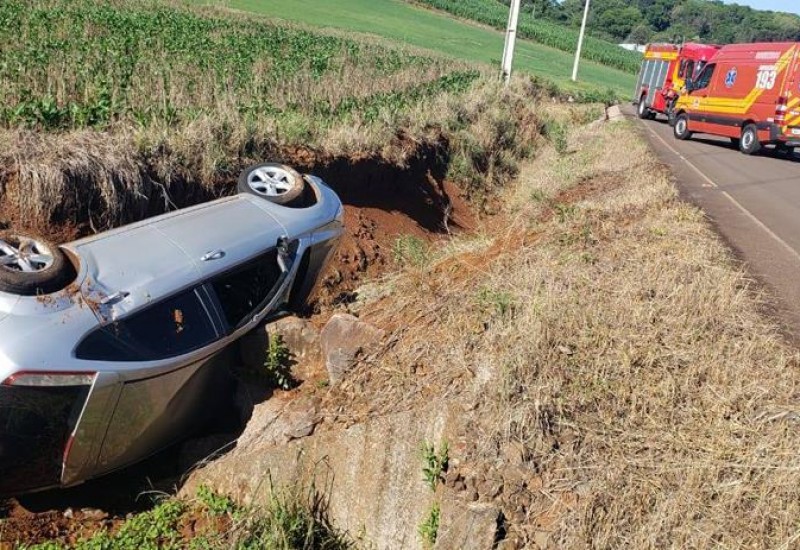 Jovem fica ferido após veículo sair de pista e capotar no interior de São José do Cedro