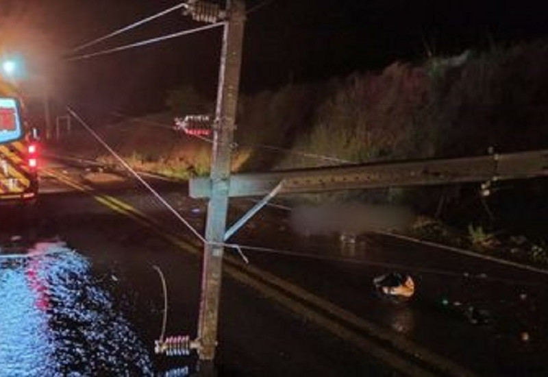 Um jovem morreu depois de colidir a moto em que pilotava contra um poste de energia elétrica caído sobre a uma rodovia. O posto foi derrubado pelo vendaval que atingiu o município de Tigrinhos, na noite deste sábado (23).