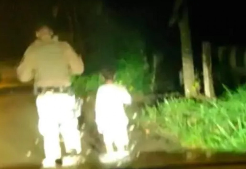 encontrado caminhando sozinho por volta da meia-noite e dez em Guaramirim, no