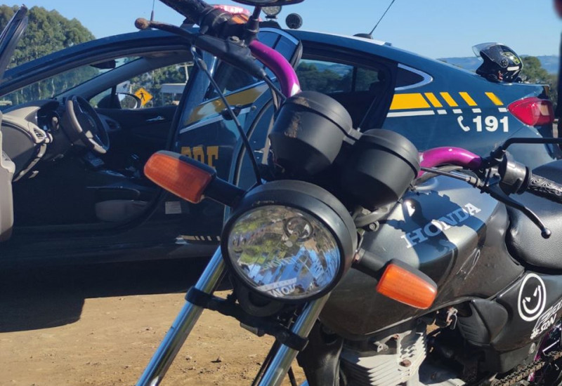 aproximadamente R$ 4.700,00 em multas; a moto foi retida e encaminhada para o