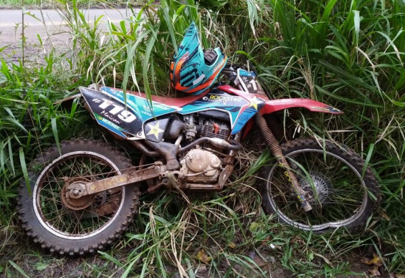 sarjeta lateral da estrada. O capacete do motociclista já tinha sido retirado