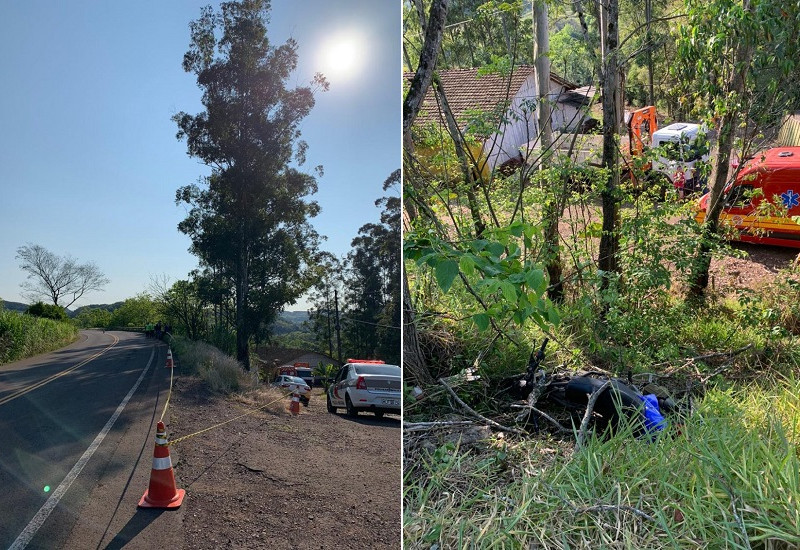 da direção, sair da pista e colidir com árvores, às margens da SC-386, na linha