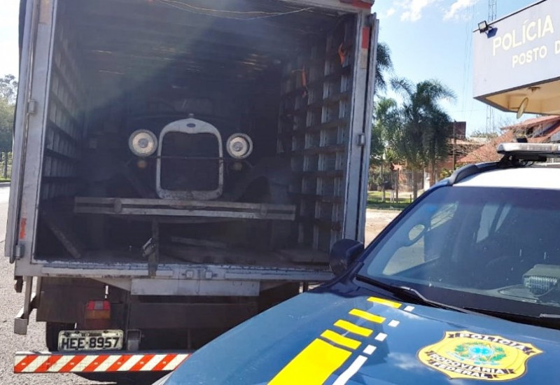 A Polícia Rodoviária Federal apreendeu um veículo antigo, de origem estrangeira, no final da manhã deste domingo, dia 21, em Cruz Alta (RS).