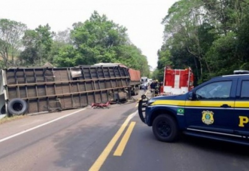 De acordo com a Polícia Rodoviária Federal (PRF), a carreta com placas de Tunápolis (SC) e o caminhão emplacado em Frederico Westphalen colidiram de forma frontal.