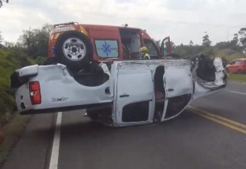 Motorista fica ferido em acidente entre carro e caminhonete na BR-282